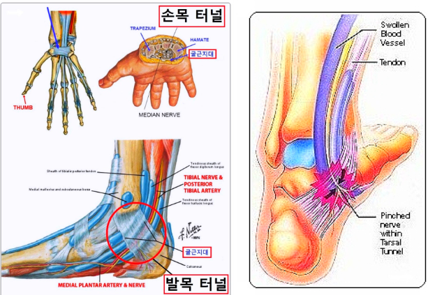 실제로는 발목터널증후군이 원인인 경우도 적지 않습니다.