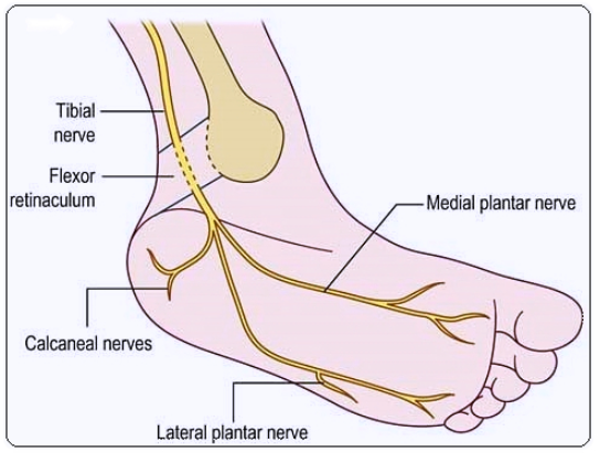 발목 근처에서 후경골신경이 직접 압박되는 경우죠.