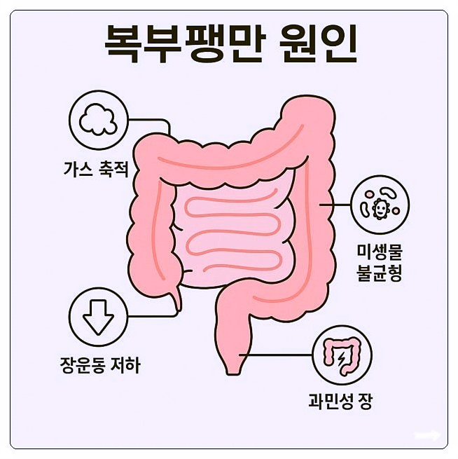 장 안에서 가스가 늘어나거나 배출이 더딘 상황입니다.