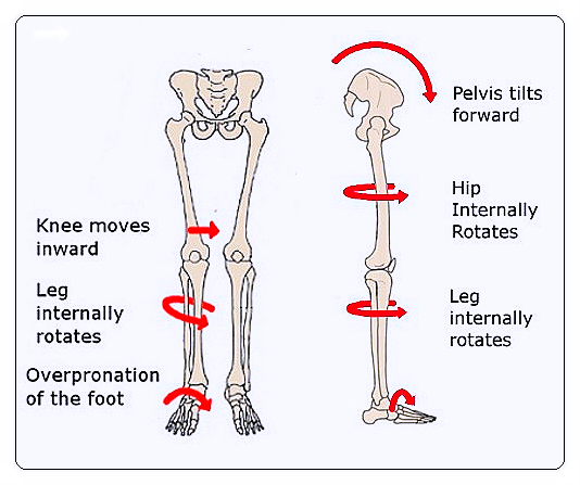 이 기둥이 기울어지게 되면, 그 아래에 있는 무릎과 발은 더 많은 부담을 떠안게 됩니다.