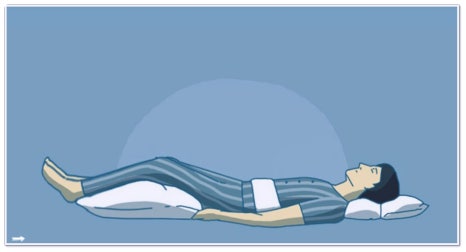- 허리가 아픈 경우에는 무릎 아래에 높은 베개를 받쳐보세요.