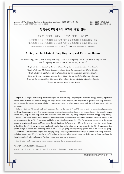 구조적인 부정렬을 바로잡는 체형교정 치료를 접목하여 통증의 증상뿐만이 아니라