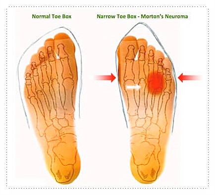 굽이 높은 신발이나 앞이 좁은 신발을 자주 신으면 신경이 눌려 통증, 저림, 화끈거림 등의 증상이 생기죠.