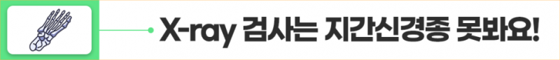 X-ray는 뼈 구조를 보기 위한 검사이므로, 지간신경종 진단에는 초음파나 MRI가 필수입니다.