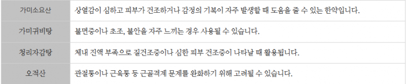 개인의 체질과 증상에 따라 맞춤형으로 처방되며,