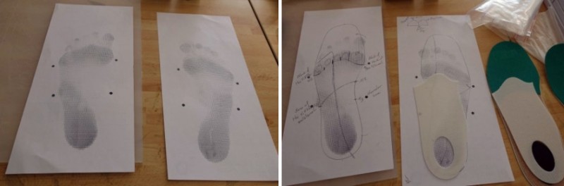 폼 박스에 올라가 발을 찍고 석고를 부어 제작을 하는 게 대부분인데