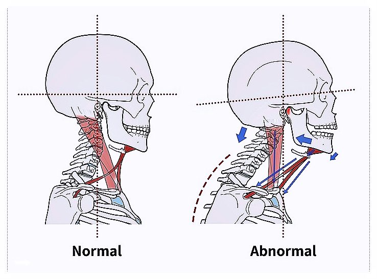 그래서 턱이 한쪽으로 틀어지면 그 영향이 목뼈로 전달되고,