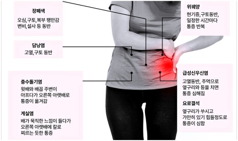 갑자기 느껴진 여자 왼쪽 옆구리 통증 때문에