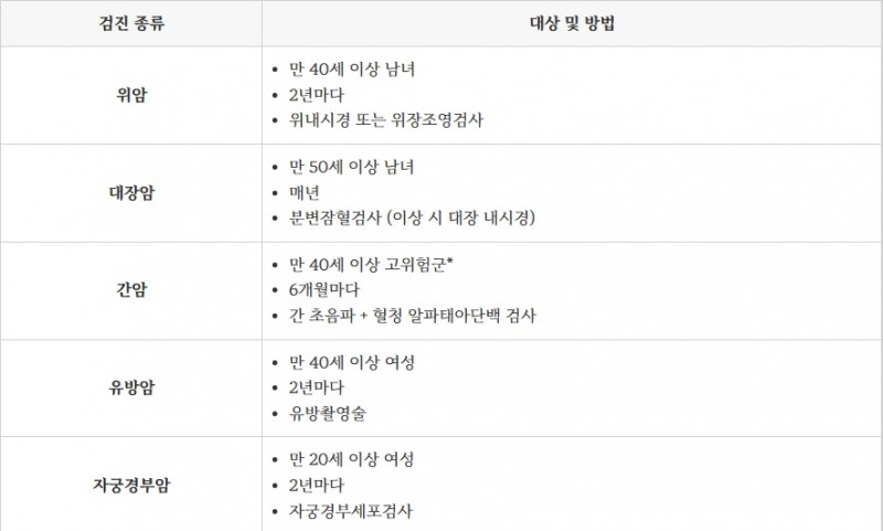 그래서 오늘은 암검진 대상 확인 방법과 검진 항목을