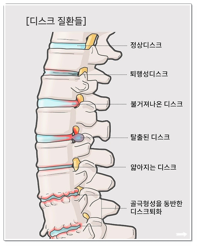 디스크는 충격을 흡수하는 젤리 같은 조직인데,