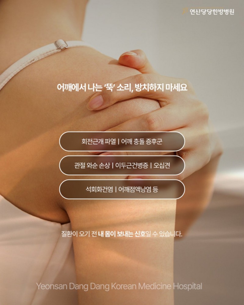 ‘뚝’ 소리가 자주 난다면, 이미 어깨 주변 조직이 반복적인 스트레스를 받아 구조적 부담이 쌓였을 가능성이 큽니다.