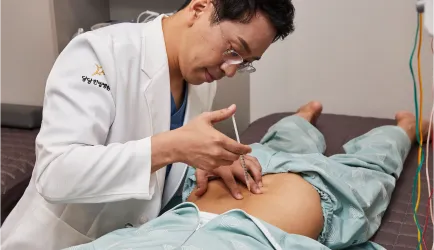 침 치료를 통하여 척추를 틀어지게 만드는 복부 앞쪽의 긴장 요소를 해결합니다.