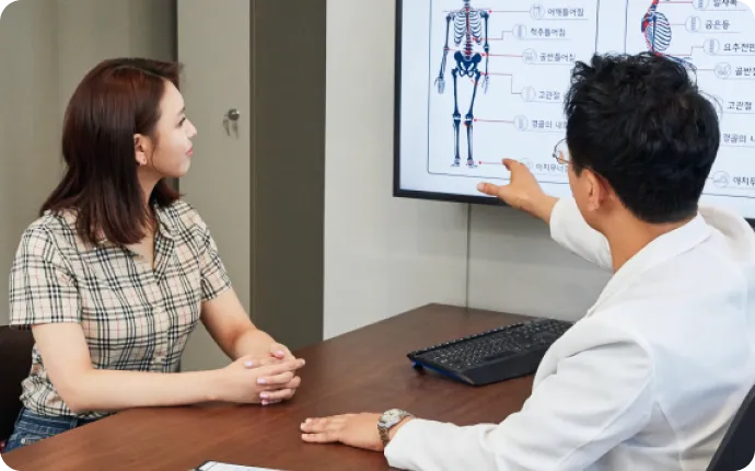 구조적인 부정렬을 바로잡는 체형교정 치료를 접목하여 통증의 증상뿐만이 아니라
