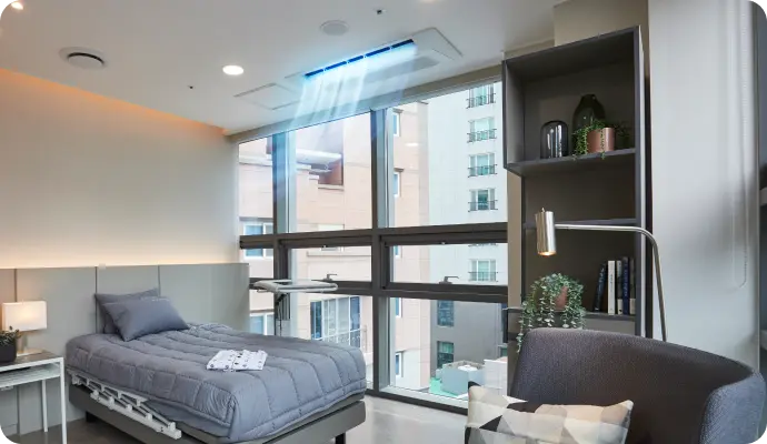 24시간 실내 온도에 맞게 필터링 된 청정 공기로 쾌적함을 유지합니다.