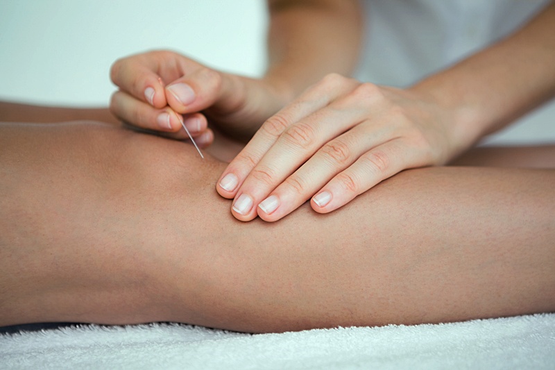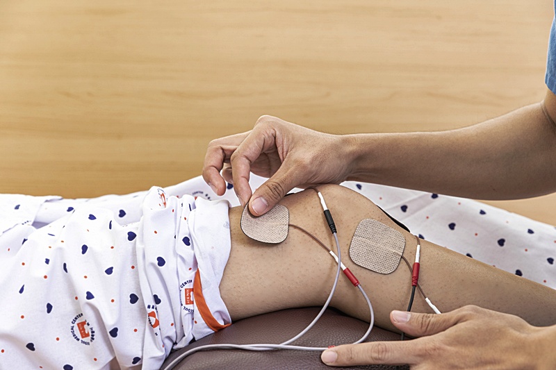 침구치료: 무릎 주변 혈자리를 자극해 순환을 돕고 통증을 완화합니다.