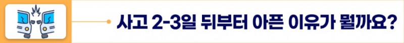 사고 당일에는 멀쩡했는데, 이틀쯤 지나 목이 뻣뻣하고 허리가 욱신거리기 시작하는 일이 생각보다 흔하죠.