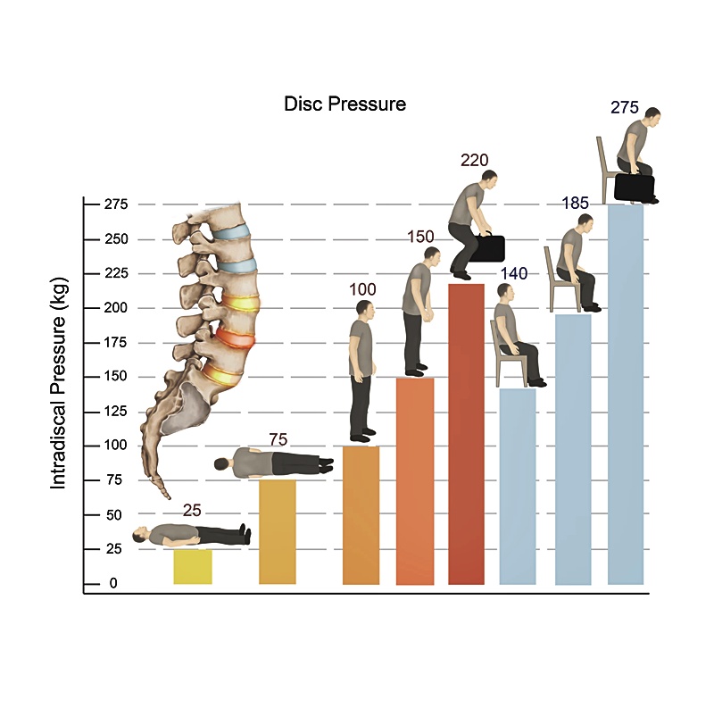 앉은 자세는 허리에 무게 이상의 부담을 주어 100kg 이상 압력이 가해질 수 있습니다.