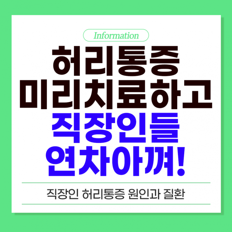 이번 글에서는 직장인 허리 통증의 주요 원인과 방치 시 나타날 수 있는 질환에 대해 자세히 알려드리겠습니다.