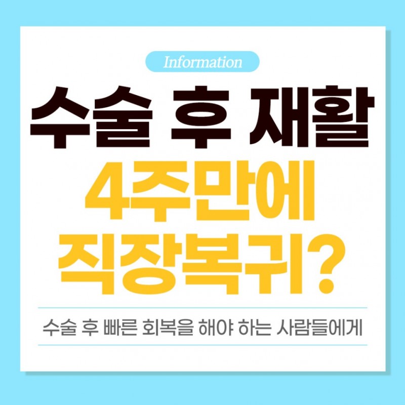 수술 후 재활은 단순한 치료가 아니라 건강한 일상으로 돌아가기 위한 중요한 여정입니다.