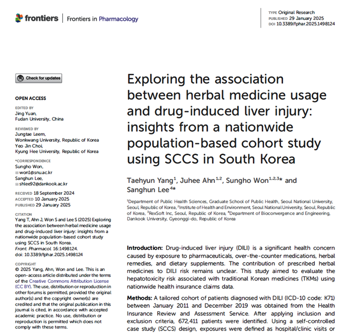 2011년부터 2019년까지 67만 여 명의 데이터를 분석한 결과, 한약 처방은 간독성 위험이 매우 낮은 것으로 확인되었습니다.
