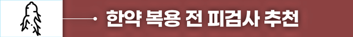 제 병원에서는 한약 복용 전 혈액검사로 간 수치를 확인하고, 장기 복용 환자는 주기적인 건강검진을 진행합니다.