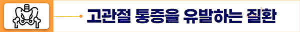 고관절 통증이 발생한다면 우선 고관절 자체의 질병을 의심해볼 수 있습니다.