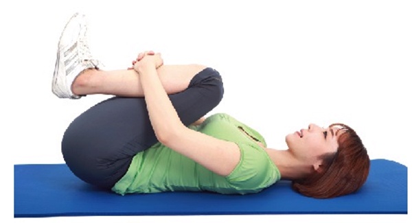 바로 누운 자세에서 무릎을 구부려 가슴에 댑니다.