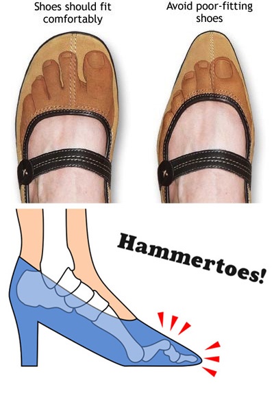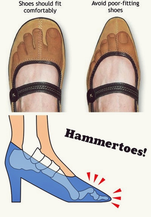 신발 앞이 넓고 굽이 낮은 신발을 착용하여 발가락에 가해지는 압력을 줄여줍니다. 신발만 잘 신더라도 발가락의 통증을 완화하는데 큰 도움이 됩니다.