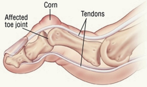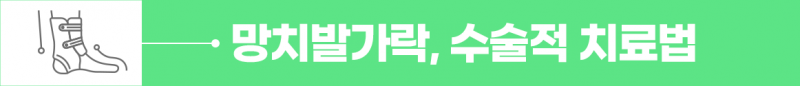 발가락의 뼈 일부를 제거하거나 재정렬하여 발가락을 펴는 수술로 수핀이나 스크류를 통해 발가락을 고정합니다.