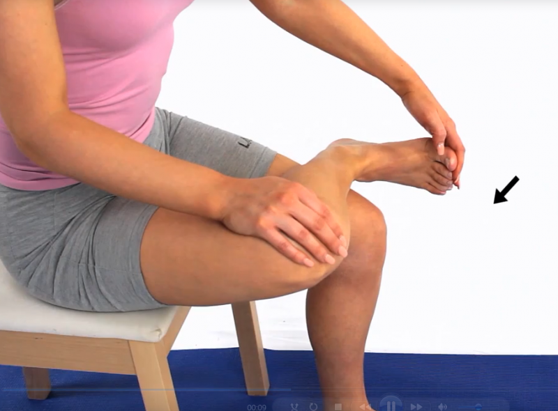 발가락에 붙어 있는 건, 쉽게 말하자면 힘줄이 발바닥 근육과 연결되어 있는데 발바닥 근육이 짧아지면서 발가락을 당기게 되죠. 그렇게 되면 망치발가락 형태가 나타나게 됩니다. 발가락이 구부러지는 것을 예방하기 위해서 발가락을 뒤로 젖히고 오므리고 펴는 동작을 반복해 줍니다.