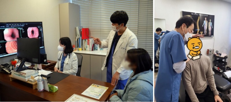 내시경 검사 결과를 듣는 외국인 환자 / 경추 추나 치료를 받는 외국인 환자