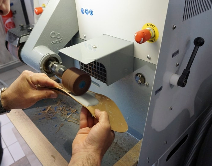 발 모양에 맞게 깔창 바닥 부분을 어떻게 디자인할지, 그리고 발과 신발 사이즈에 맞게 재단을 합니다. 이 작업에서 1mm 오차만 있어도 발의 불편함을 호소하기 때문에 정교해야 합니다.