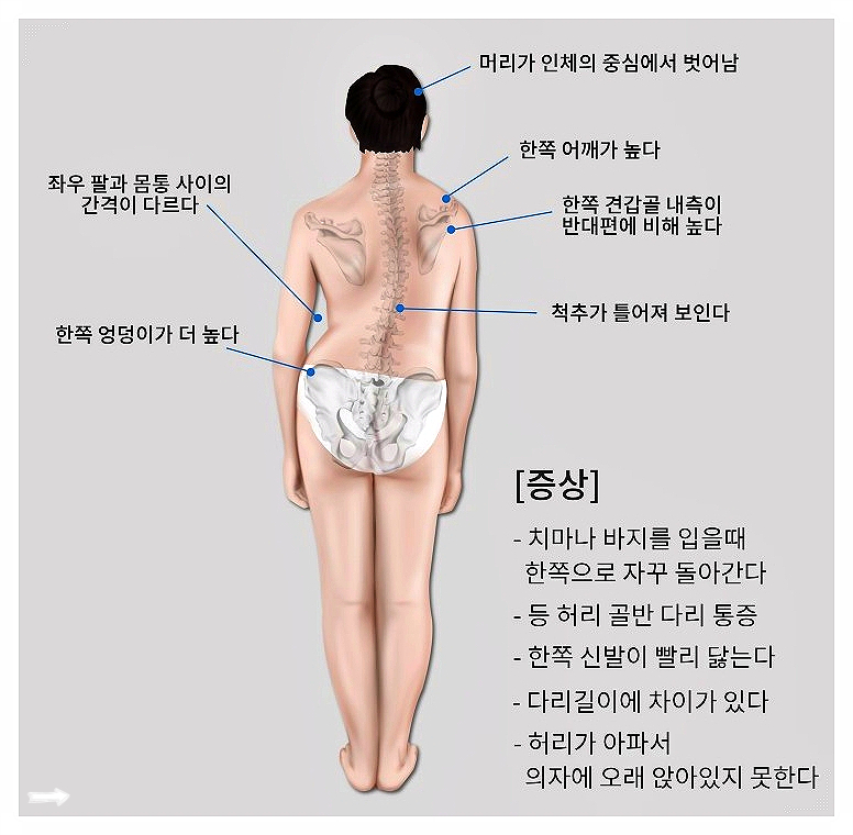 척추측만증이 새롭게 생기거나 악화될 수 있는데요.