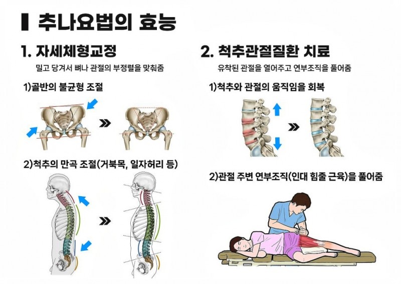 추나요법은 한의사가 손으로 척추, 골반, 관절, 근육 등을 다루어