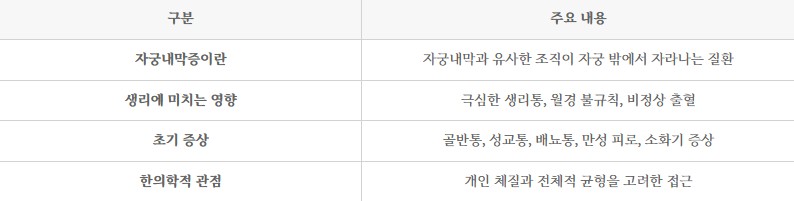 그중에서도 ‘자궁내막증’이 생리에 어떤 영향을 주는지, 또 일반적인 생리통과는 어떤 차이가 있는지 궁금해하시는 분들이 많습니다.