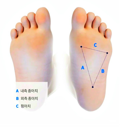 우리 발에는 총 세 가지 아치가 존재합니다.