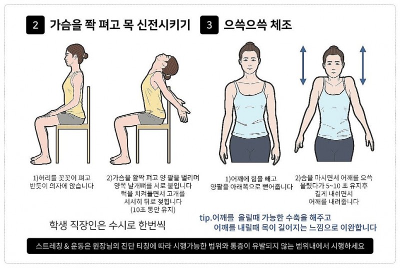 반복적이고 한쪽으로 치우친 목 움직임도 줄이는 것이 중요합니다.