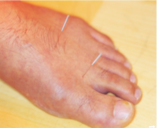 침 치료는 엄지발가락 주변과 발 아치 관련 경혈을 자극해 통증 완화와 근력 강화에 도움을 줍니다.