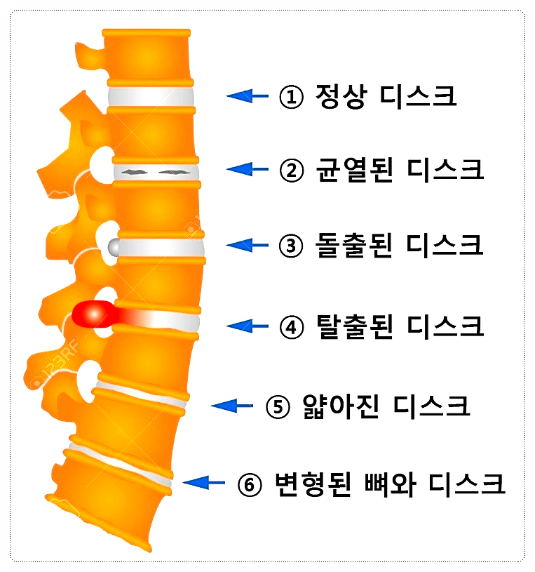 허리 디스크가 제 위치에서 벗어나면 주변 신경을 자극하게 됩니다.